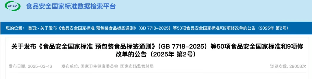 2025年3月27日,国度卫生健康委会同国度市场监视办理总局发布50项食物平安国度尺度和9项尺度点窜单。