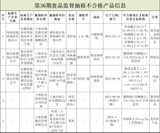 上海市市场监管局引见,2025年第36期省级食物平安抽检消息发布。本次抽检消息涉及7大类食物,包罗蛋成品、肉成品、食用农产物、食用油、油脂及其成品、薯类和膨化食物和糖果成品。按照《中华人平易近国食物平安法》《上海市食物平安条例》等,现将市市场监管局开展本市食物平安抽检相关消息发布如下: