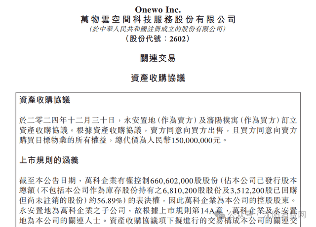 按照资产收购和谈,总价格为1。5亿元。此中首期款为4800万元,二期款为8700万元,尾款为1500万元。过户日定于2025年2月28日之前完成。